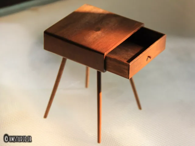 یکی دیگر از محصولات مرتبط با مجموعه لوازم مینیاتوری. این میز دارای ارتفاع حدود ۱۰ سانتیمتری است و یک کشو دارد. در ادامه جزئیات بیشتری از آن را میبینید: