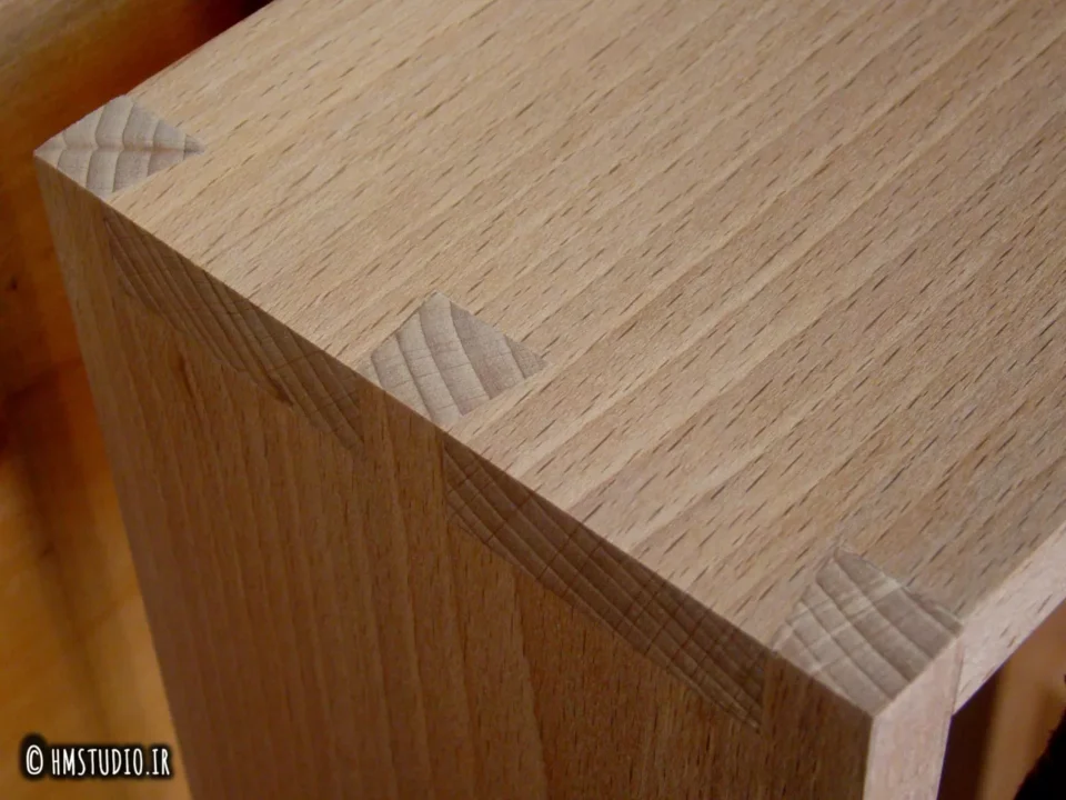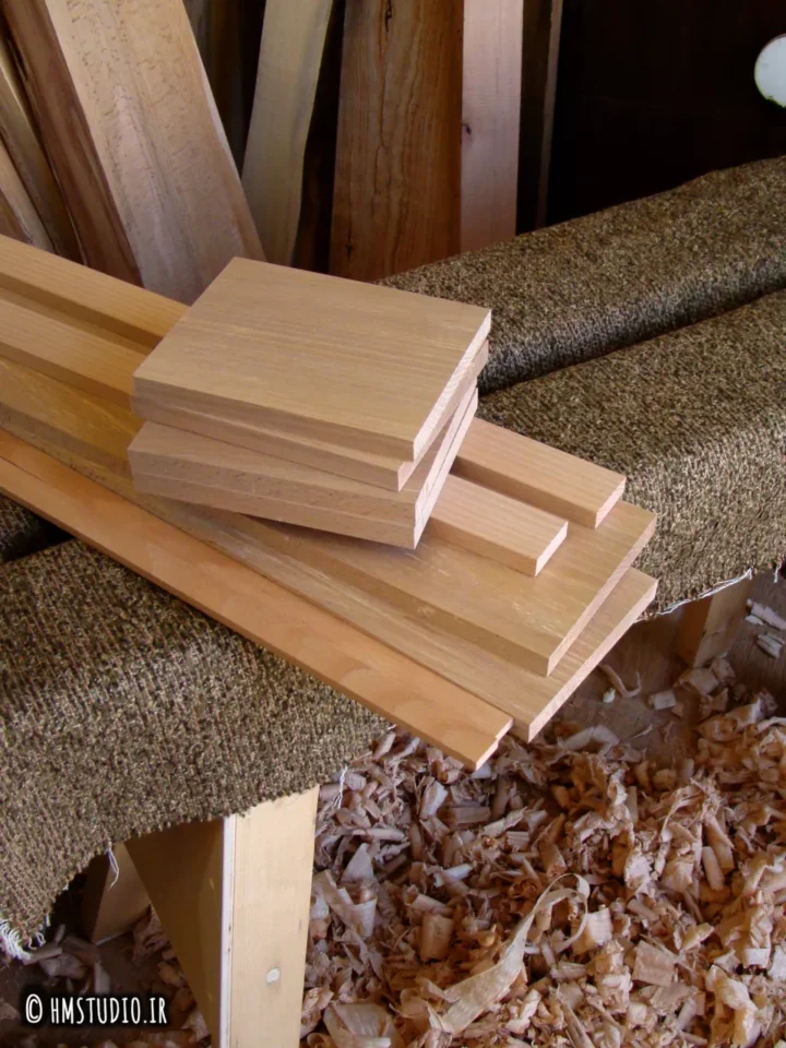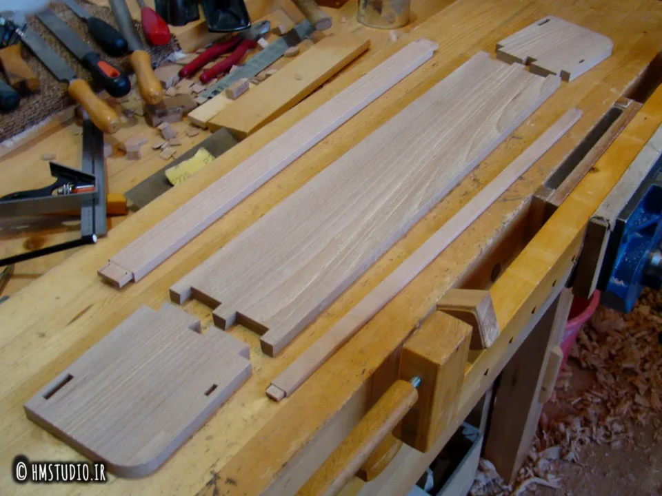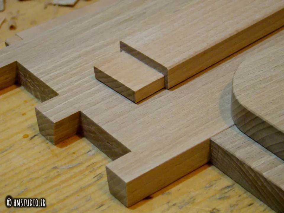برای استحکام و همچنین زیبایی این محصول از اتصالات دم چلچله و فاق و زبانه ساده و گوه دار استفاده شده است. در زیر مراحلی از آماده سازی قطعات و ساخت این طبقات را مشاهده میکنید.