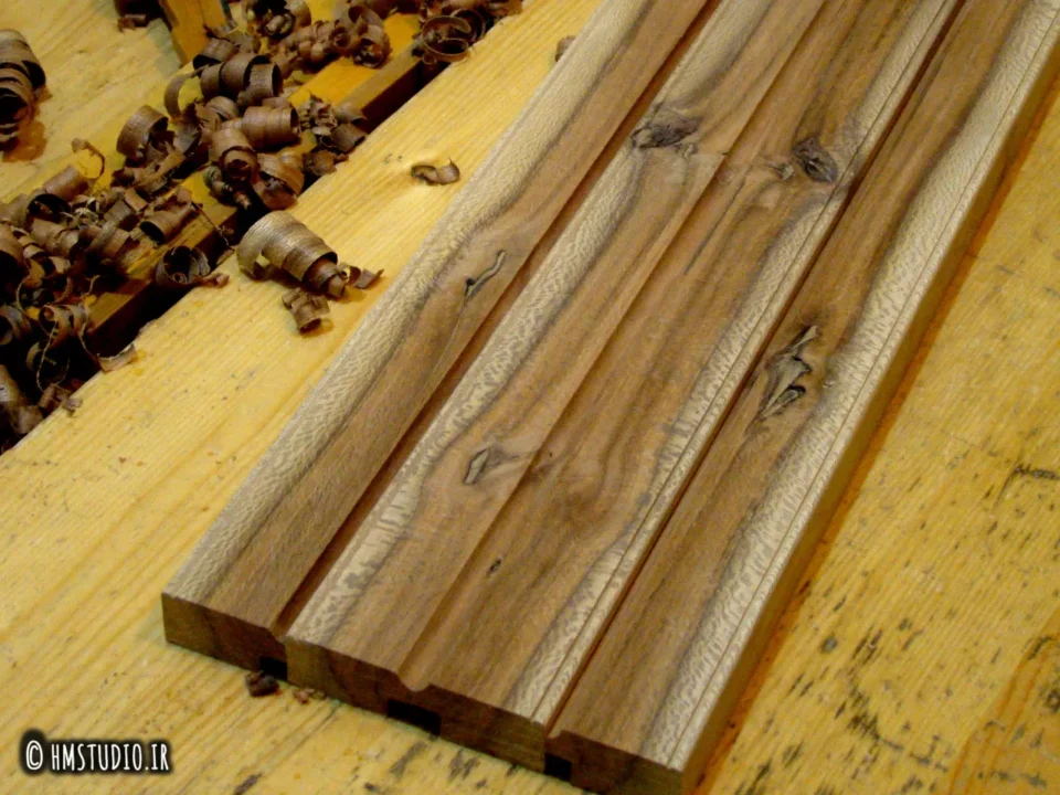 در ساخت آن از چوب چنار استفاده شده و ابزارهای لبه آن تماما با ابزار دستی اجرا شده است.
